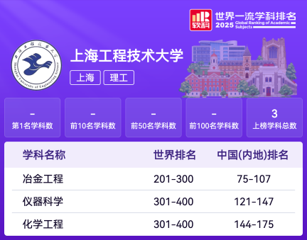 上海工程技术大学是工学、经济、管理、艺术、设计等多学科互相渗透、协调发展的全日制普通高等学校,是教育部“卓越工程师教育培养计划”首批试点高校、全国地方高校新工科建设牵头单位、上海市“高水平地方应用型高校”试点建设单位。2017年被列为上海市博士学位授予单位立项建设单位。
