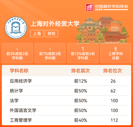 | 学科代码 | 学科名称 | 排名层次 | 学科排名 |