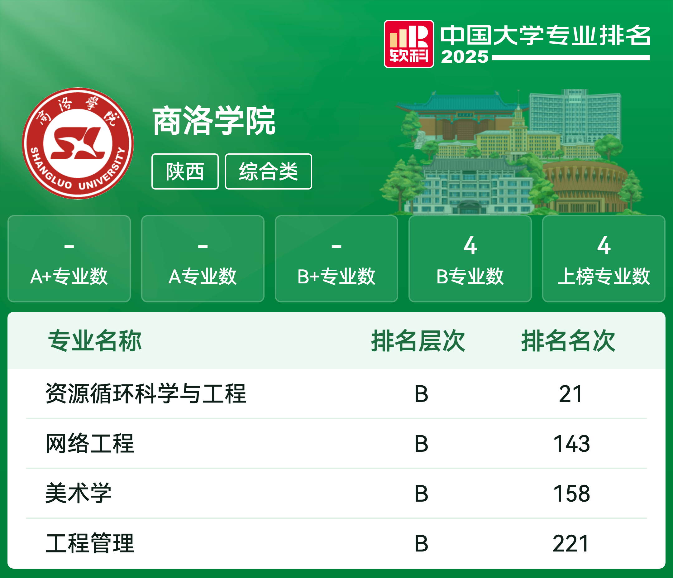 | 专业名称 | 评级 | 专业排名 |