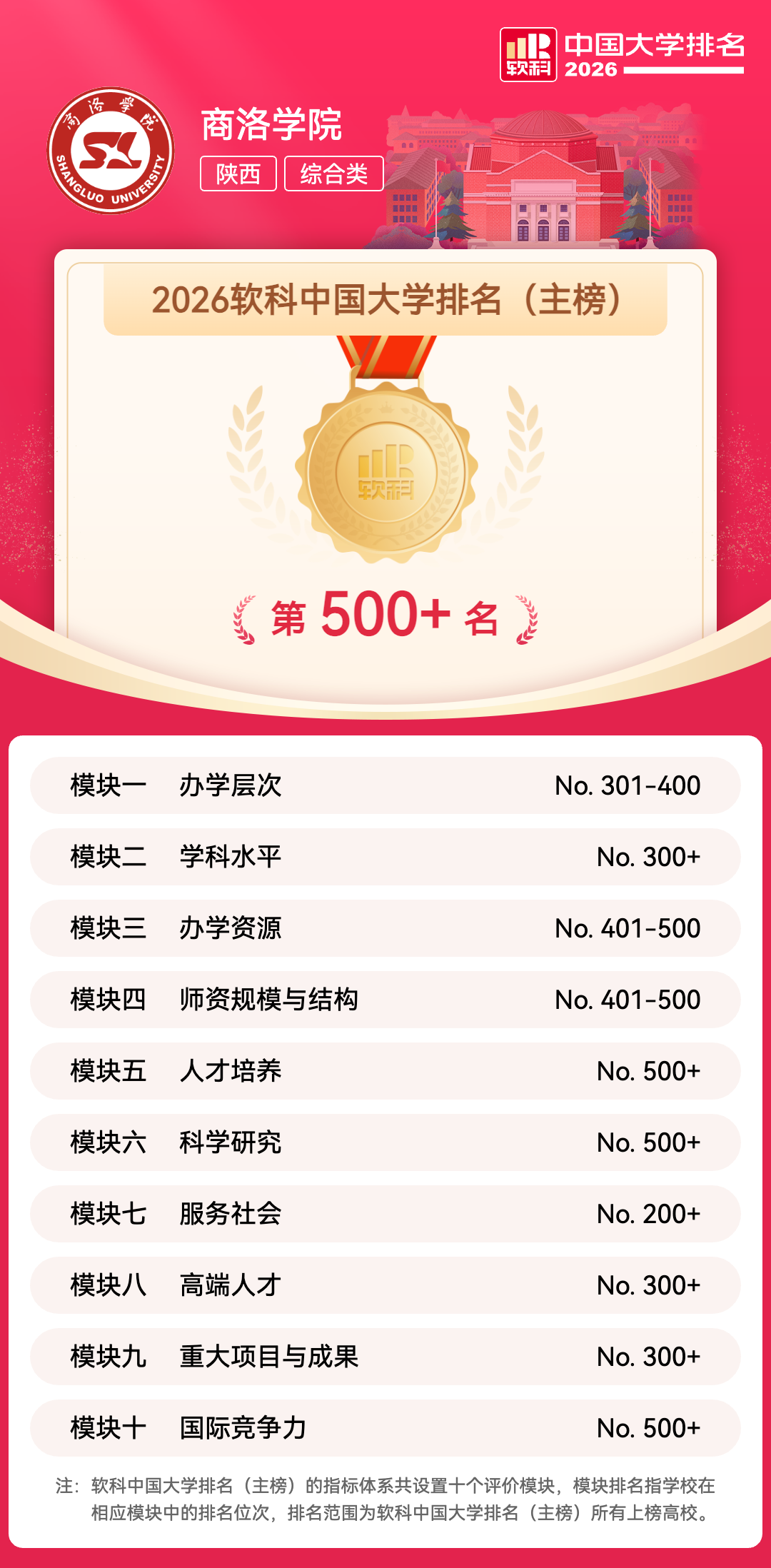 “软科中国大学排名”即“软科中国最好大学排名”,由上海软科教育信息咨询有限公司(简称软科)在2015年首次发布,2020年软科对中国大学排名进行了全面升级,倾力打造关于中国高校办学水平最为全面、最为系统、最为准确的排名评价,旨在向学生、家长和全社会提供更加及时、更加细致、更加有针对性的高校可比信息。