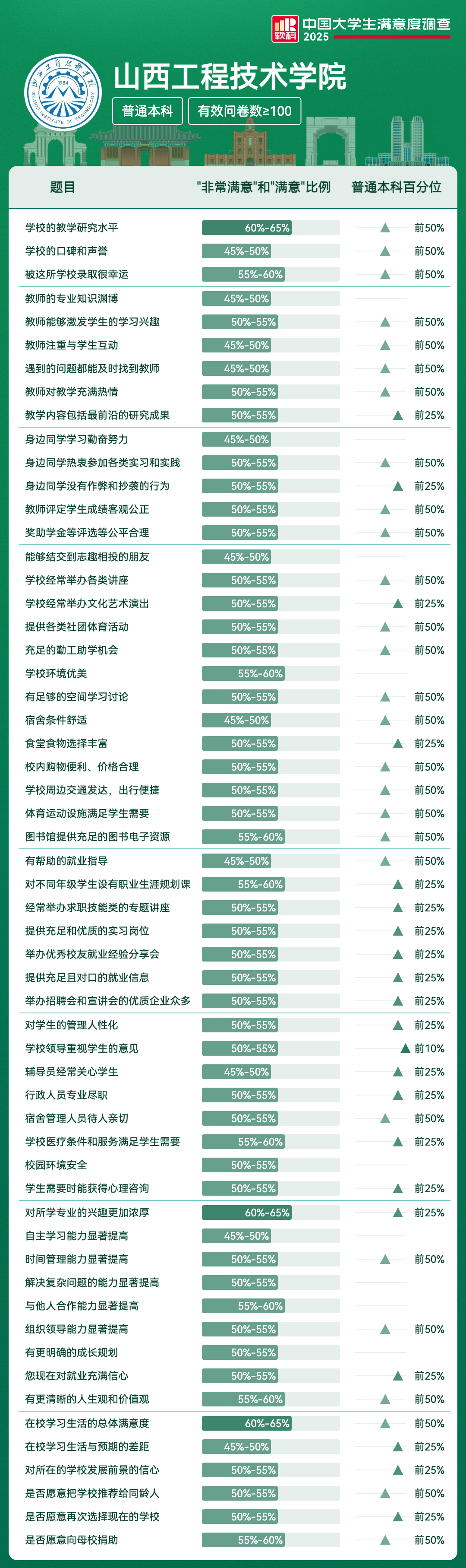 | 学校领导重视学生的意见 | 50%-55% | 前10% |