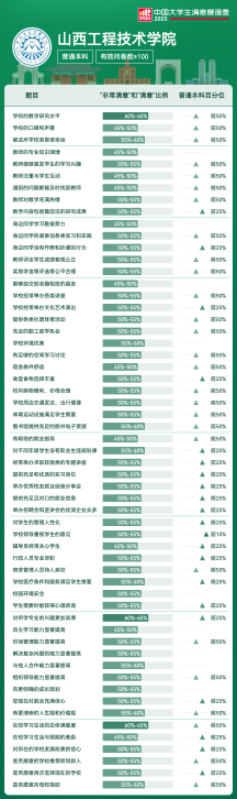 | 满意度前5项 | 满意及以上比例 | 全国高校排名区间 |