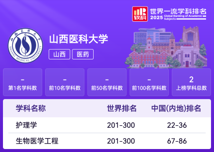 软科中国医药类大学排名