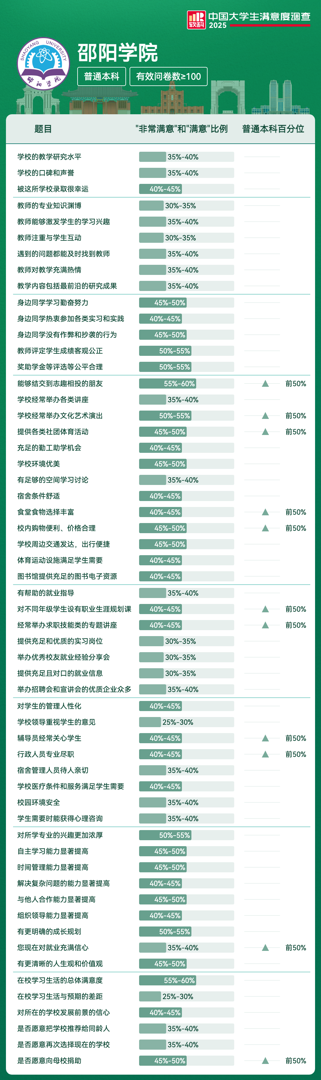 | 学校经常举办文化艺术演出 | 50%-55% | 前50% |