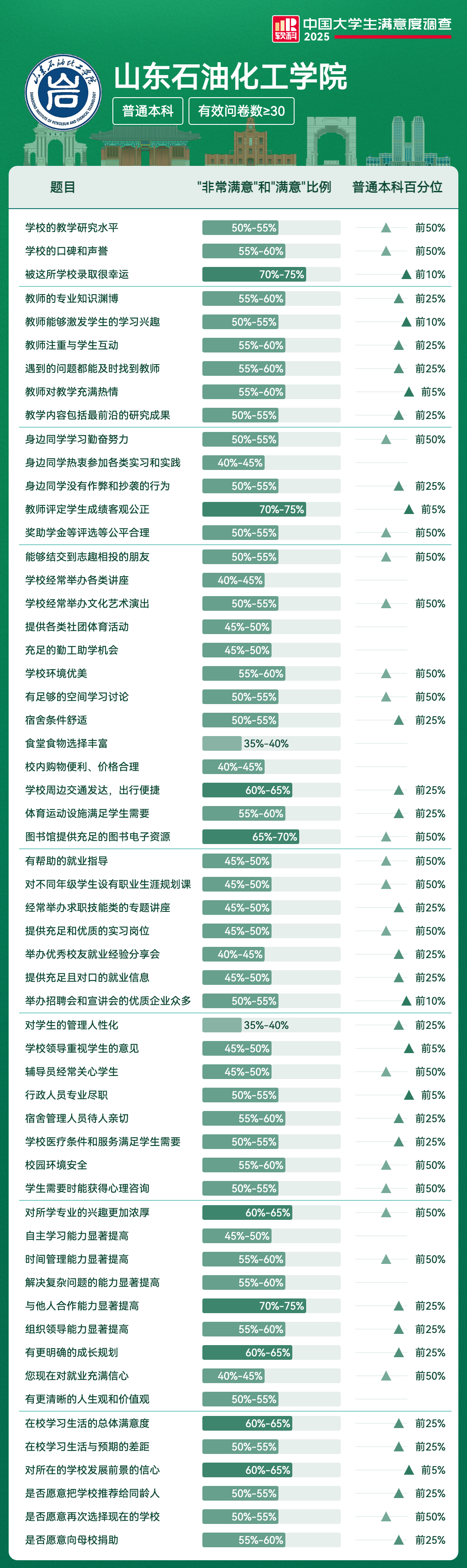 | 对所在的学校发展前景的信心 | 60%-65% | 前5% |