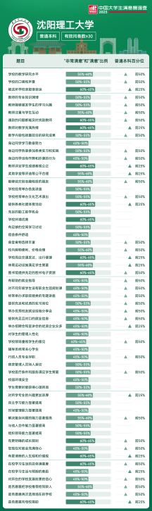 | 满意度前5项 | 满意及以上比例 | 全国高校排名区间 |