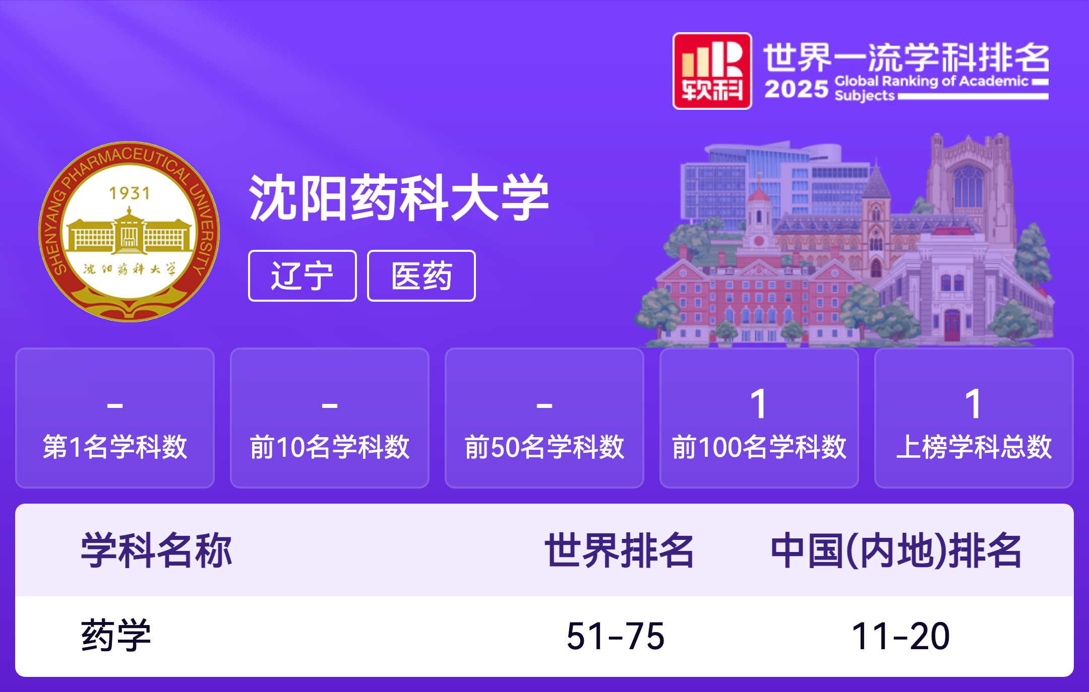 软科中国医药类大学排名
