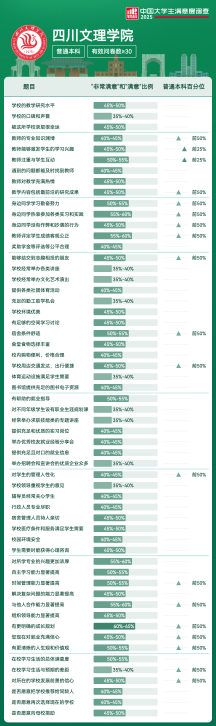 | 满意度前5项 | 满意及以上比例 | 全国高校排名区间 |