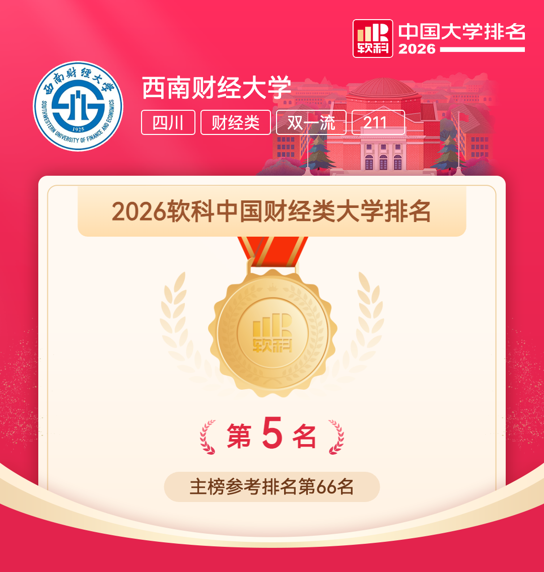 逐梦百年,未来可期 西南财经大学是“全国高校毕业生就业工作50强”。2018-2020年,我校本科生的平均就业率为94%,本科毕业生深造率长期保持在40%左右。欢迎报考西南财经大学,在这里遇见更好的未来!