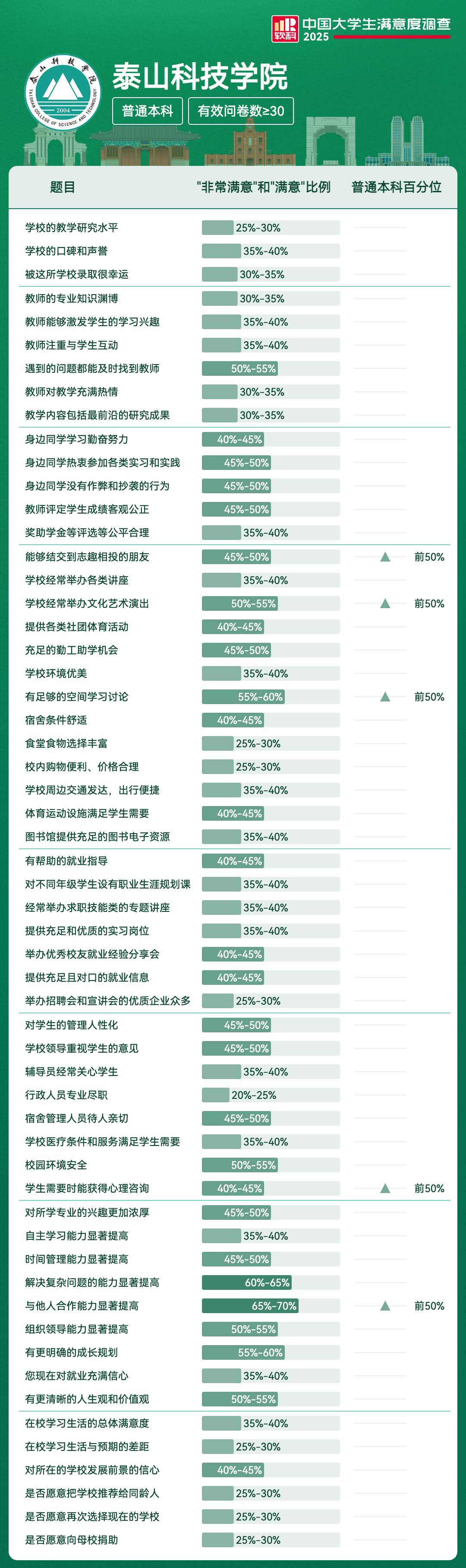 | 学生需要时能获得心理咨询 | 40%-45% | 前50% |