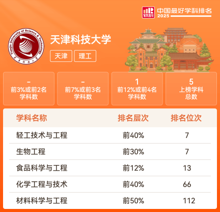 | 0822 | 轻工技术与工程 | 前40% | 7 |