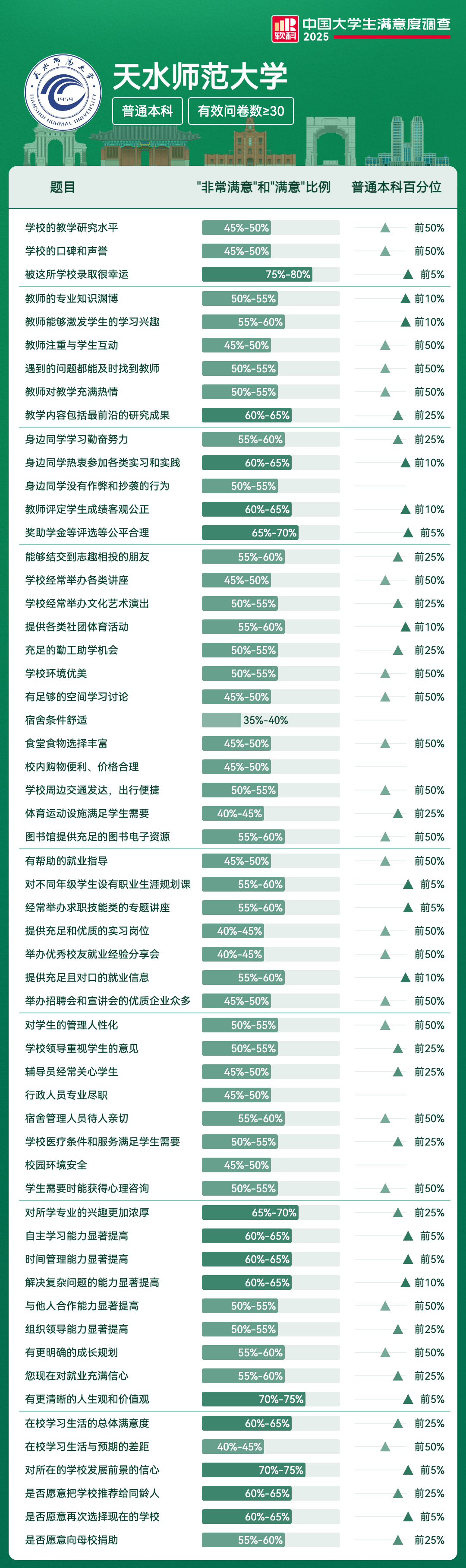 | 奖助学金等评选等公平合理 | 65%-70% | 前5% |