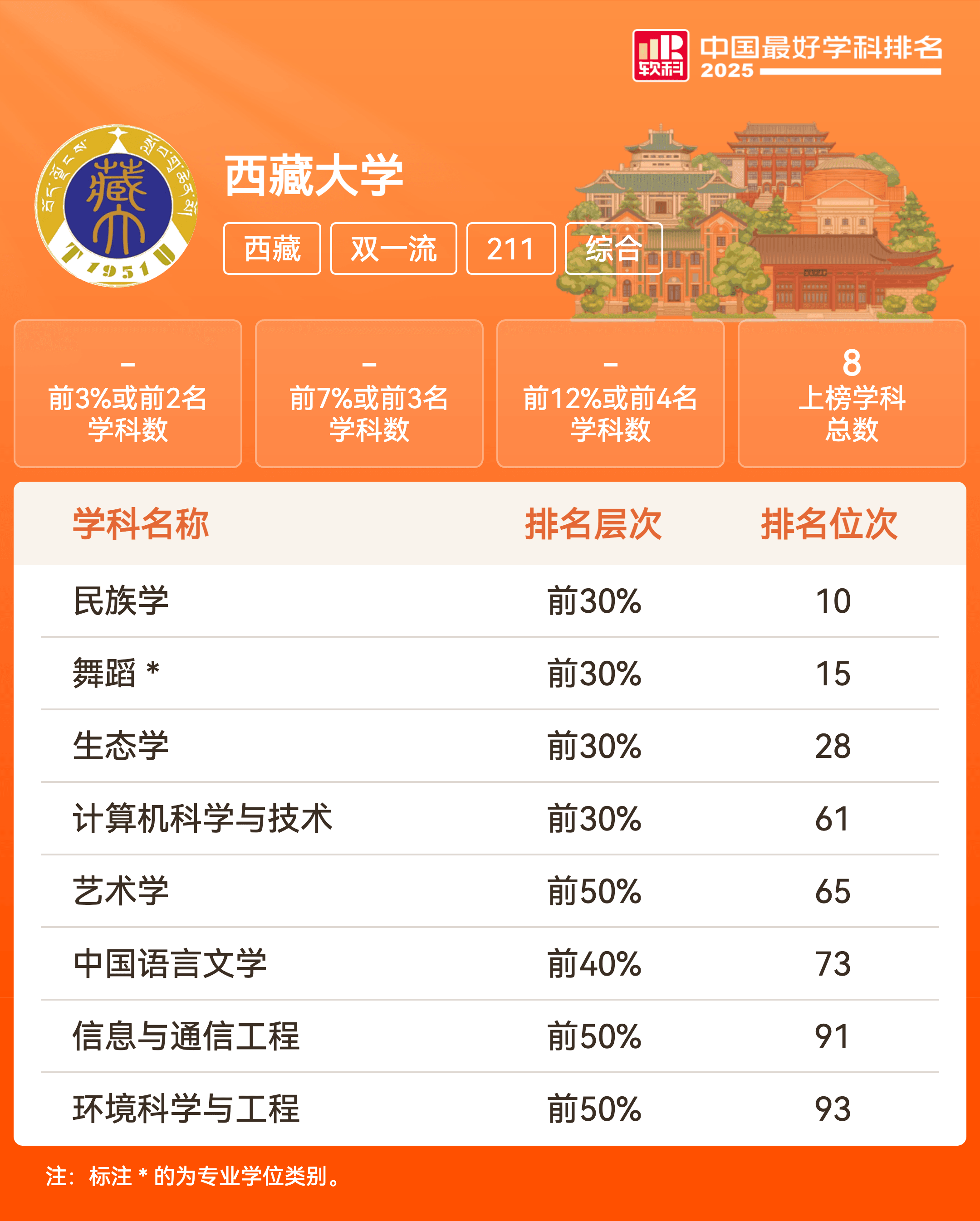| 学科代码 | 学科名称 | 排名层次 | 学科排名 |