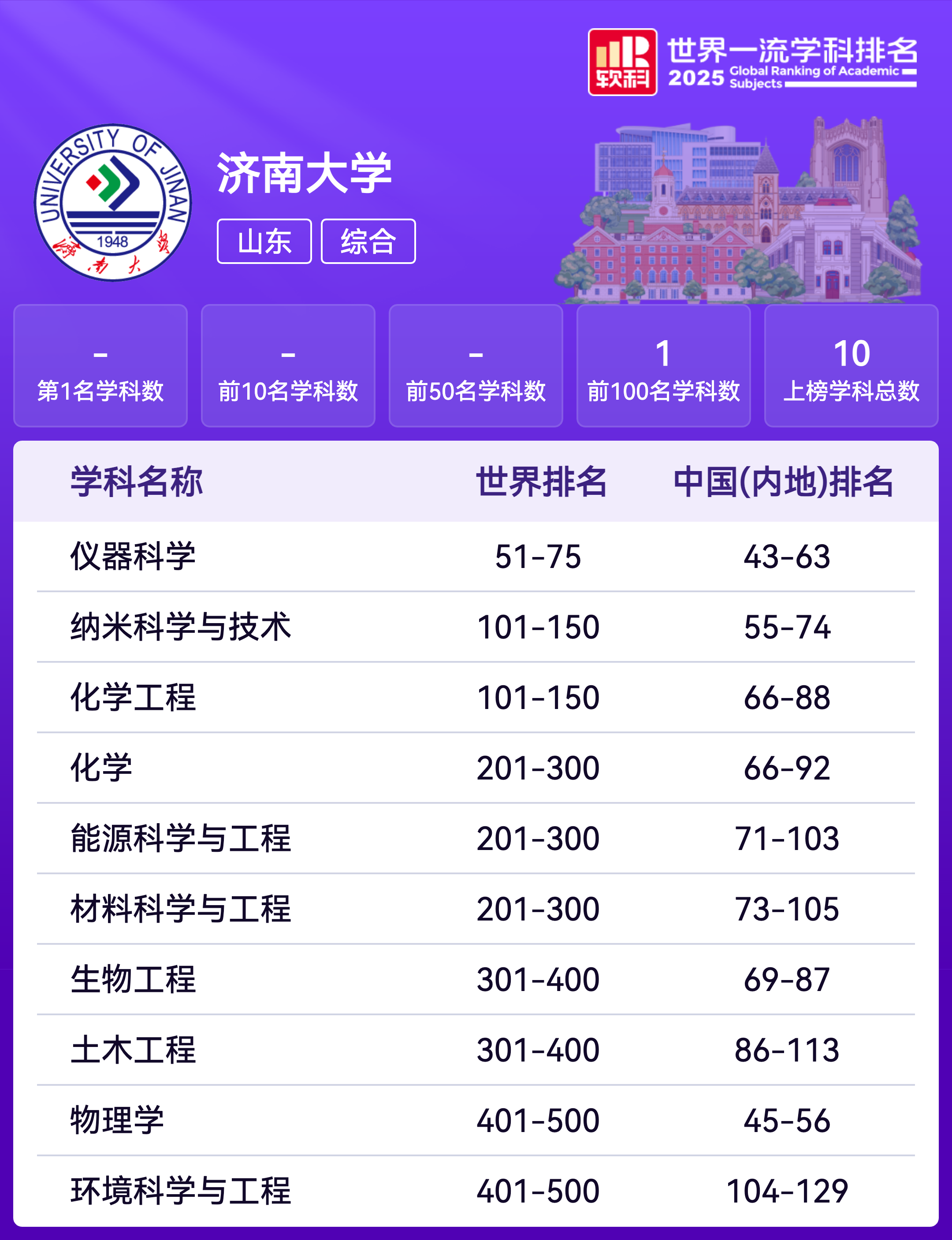 软科中国大学排名(主榜)