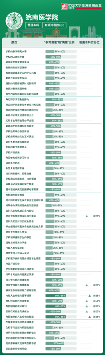 | 满意度前5项 | 满意及以上比例   | 全国高校排名区间  |