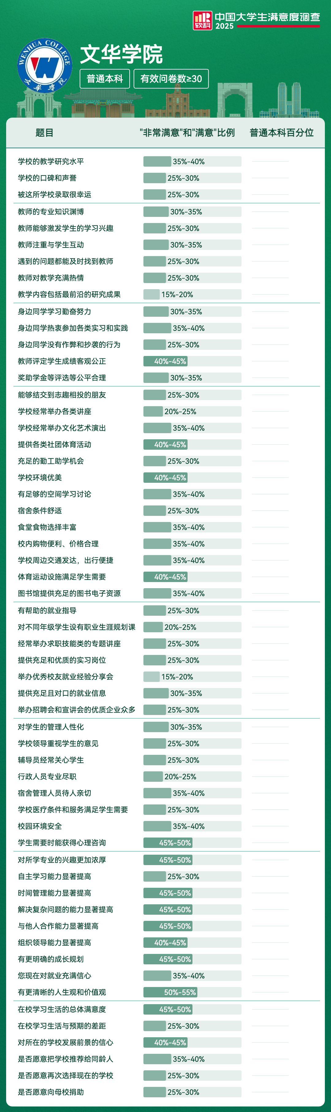 | 被这所学校录取很幸运 | 25%-30% | |