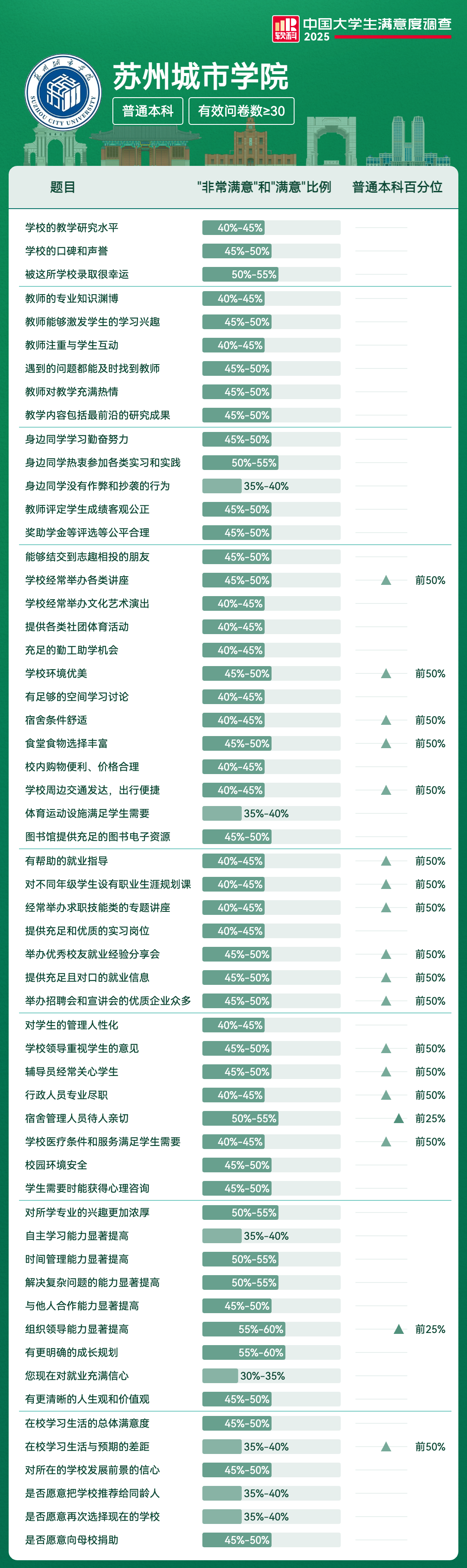 | 宿舍条件舒适 | 40%-45% | 前50% |