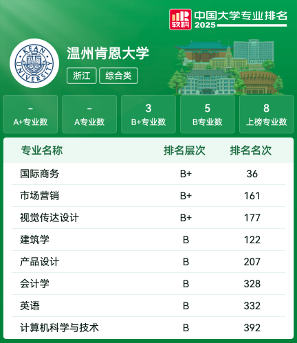 温州肯恩大学是浙江省唯一一所具有独立法人资格的中美合作大学。2006年习近平同志亲自见证签约,2012年开始办学。2018年经第一次教育部、浙江省会商明确“将温州肯恩大学列入中外合作办学示范性重点建设对象,支持建设国际化、高水平大学”。2019年学校获教育部批复开展外国硕士、博士教育。 本科学生在就读期间同时在中美两国注册学籍,毕业后可获中美双文凭;享有自由赴美交换、免费英语强化、专业自由选择等。