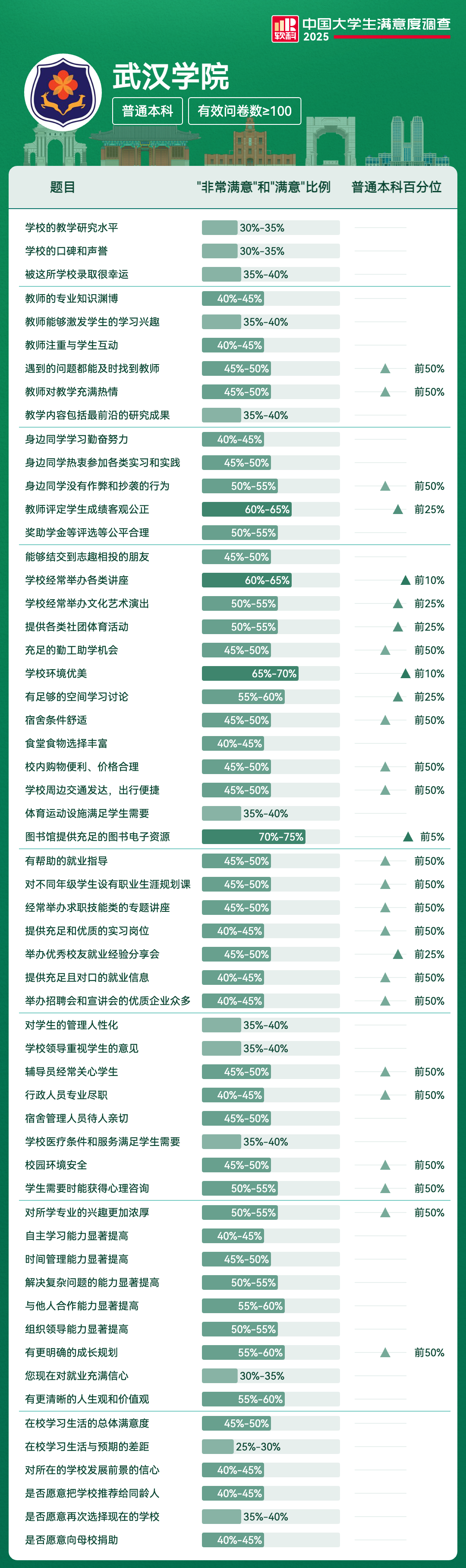 | 学校经常举办各类讲座 | 60%-65% | 前10% |