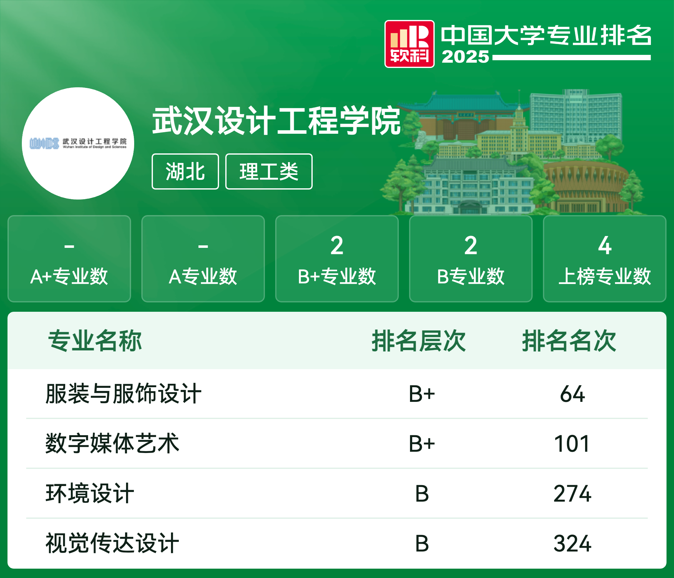 | 专业代码 | 专业名称 | 评级 | 专业排名 |