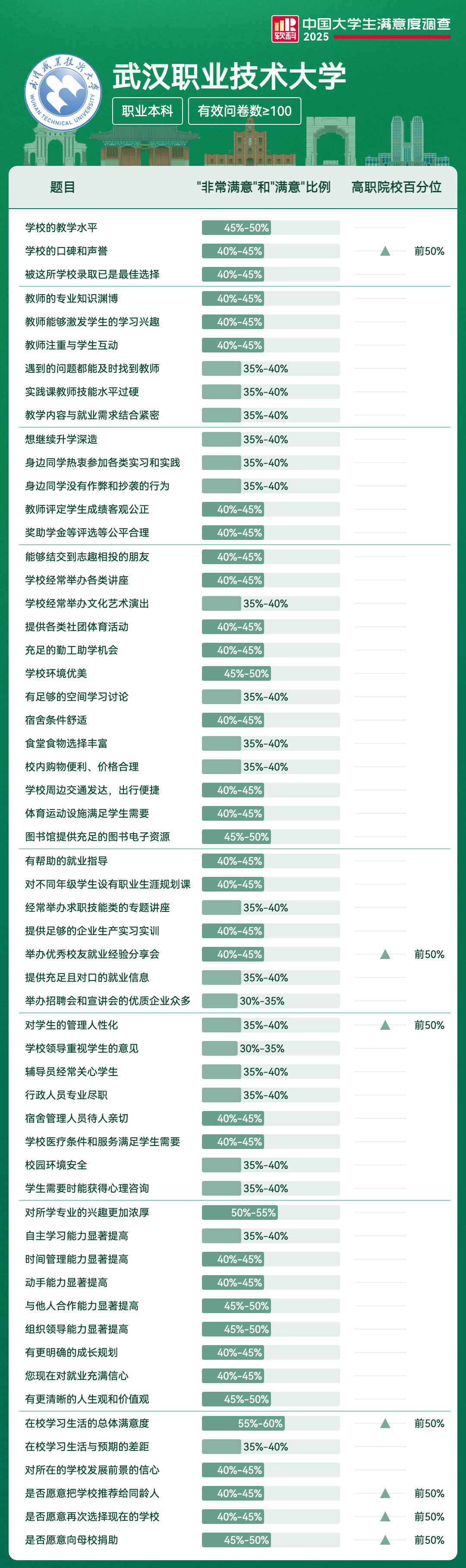 | 在校学习生活的总体满意度 | 55%-60% | 前50% |