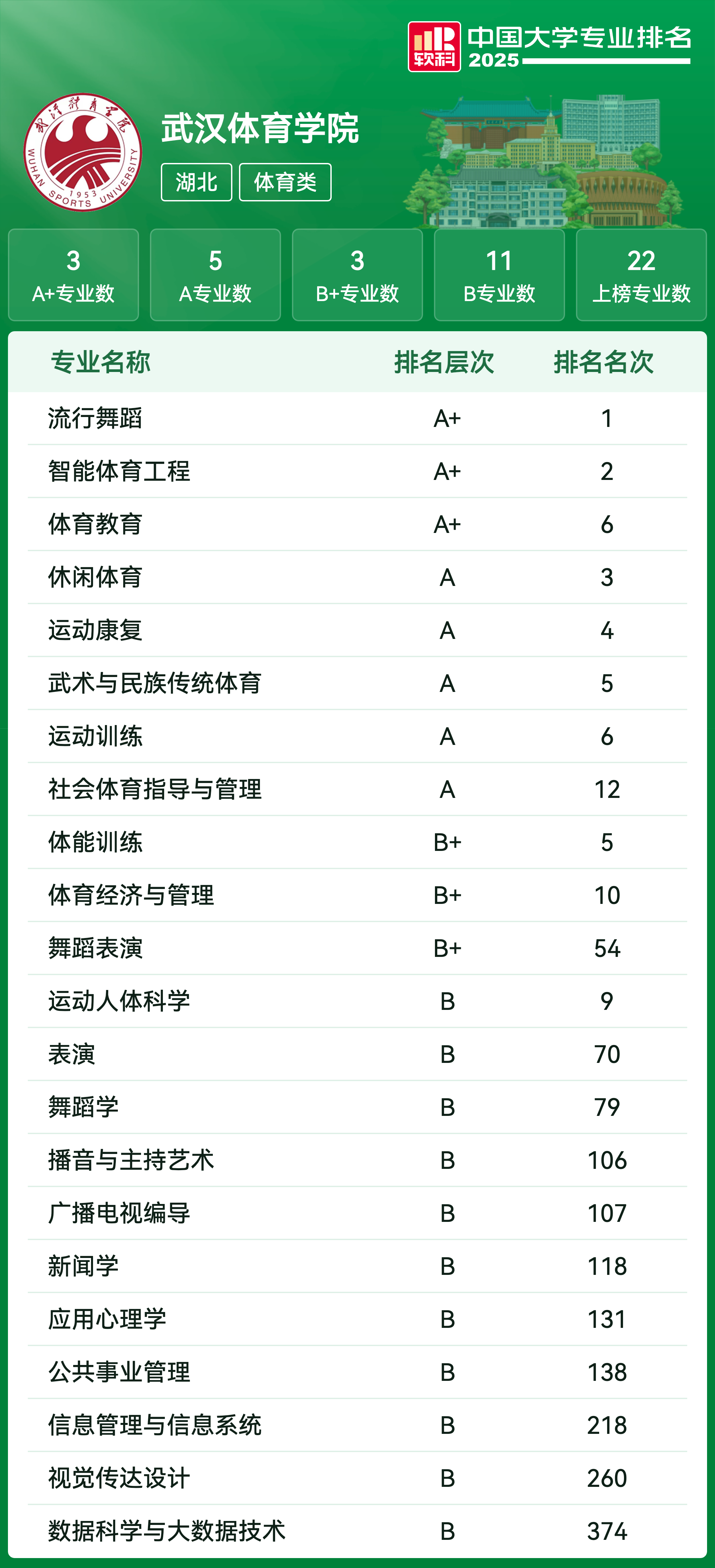 软科中国体育类大学排名