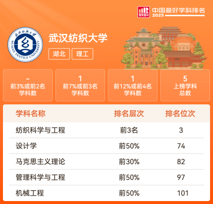 武汉纺织大学在新中国振兴民族轻工业的呼声中应运而生,其前身是始建于1958年的武汉纺织工学院,1999年更名为武汉科技学院,2010年更名为武汉纺织大学。学校秉承“崇真尚美”的校训,弘扬“自强不息、经天纬地”的大学精神,坚持特色发展,实行开放办学,主动服务纺织行业和地方经济社会发展,历经六十余载,已成为理、工、文、法、经、管、艺等多学科协调发展、特色鲜明、优势突出的普通高等院校。