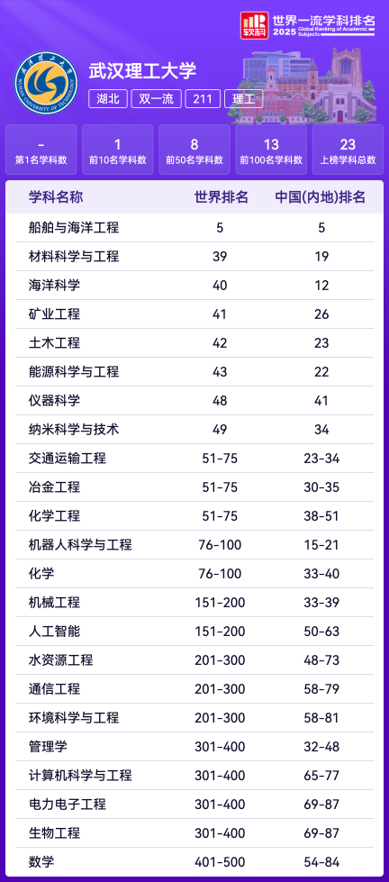 软科世界大学学术排名