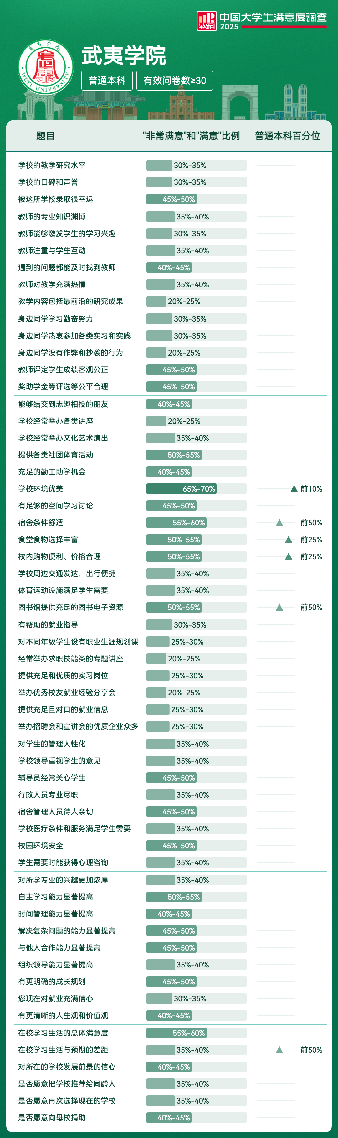 | 宿舍条件舒适 | 55%-60% | 前50% |