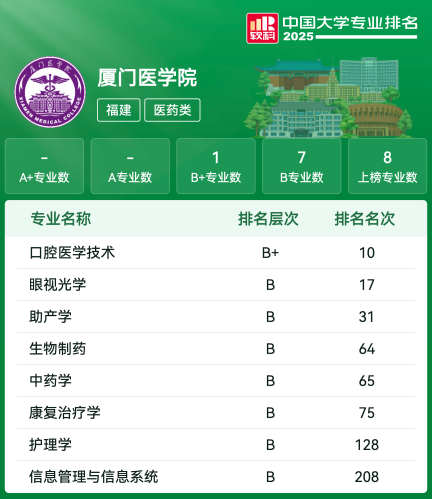 | 专业代码 | 专业名称 | 评级 | 专业排名 |