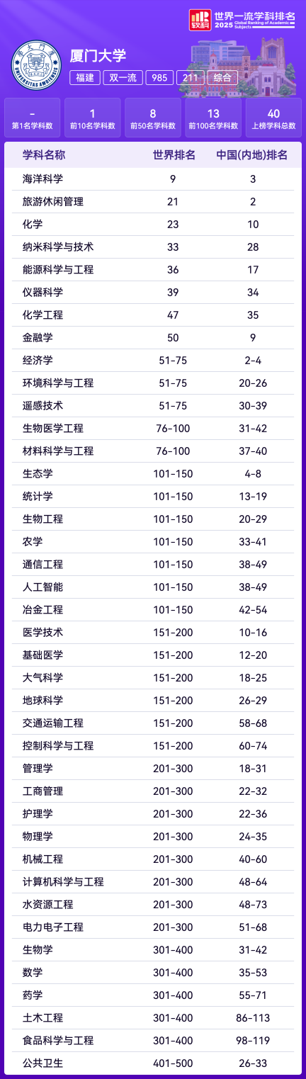 软科世界大学学术排名