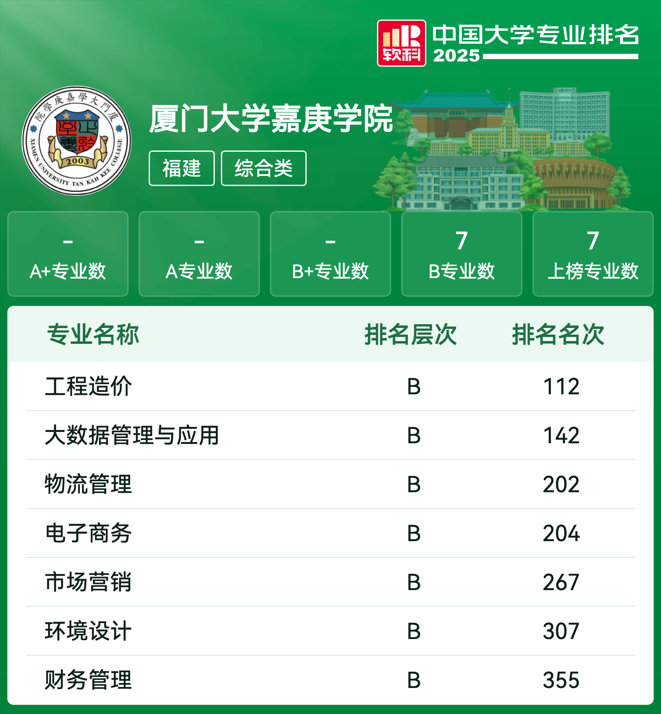 | 专业代码 | 专业名称 | 评级 | 专业排名 |