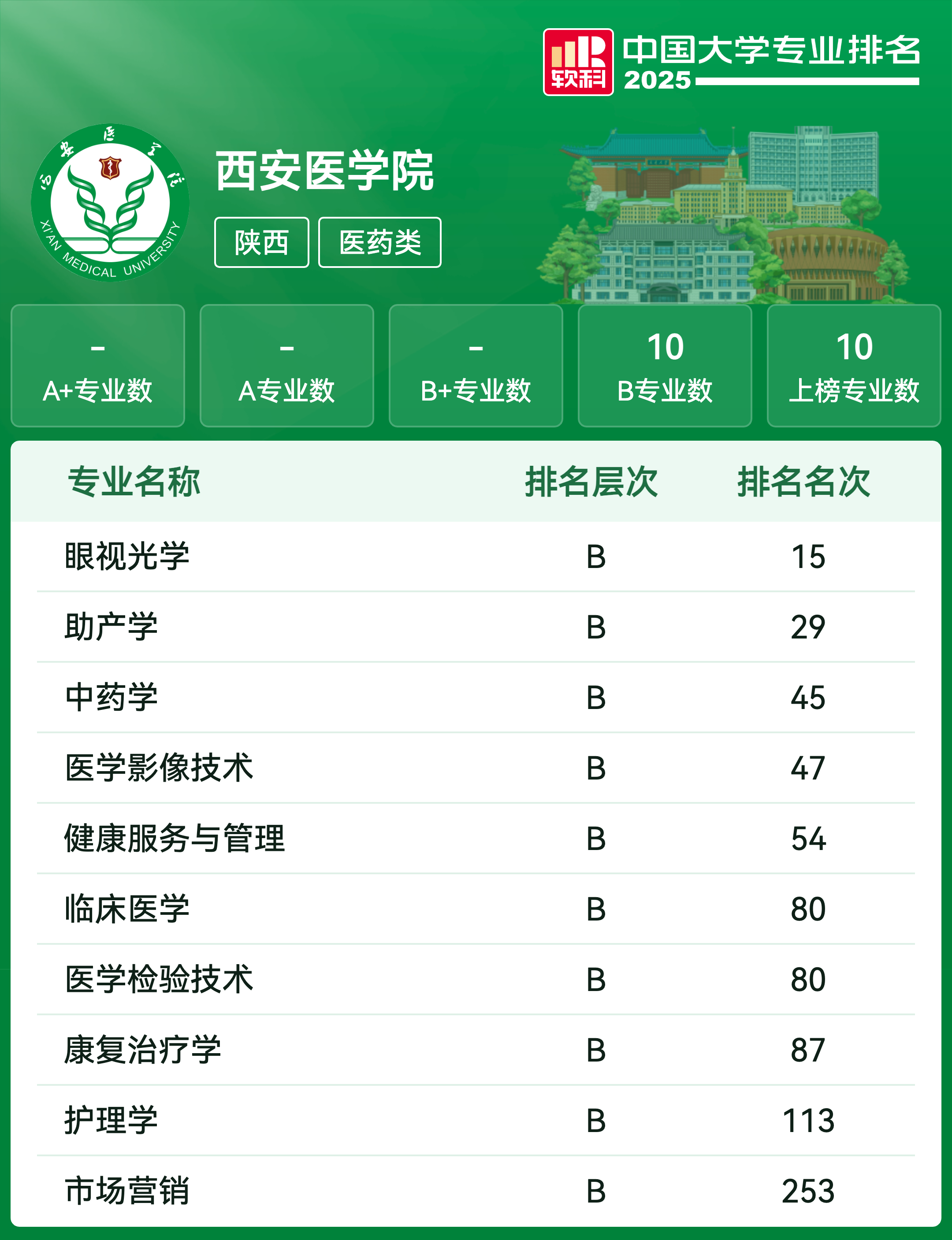 软科中国医药类大学排名