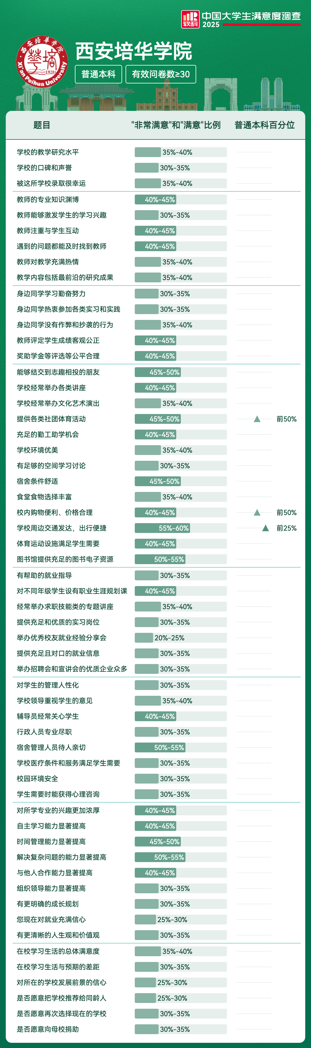 | 校内购物便利、价格合理 | 40%-45% | 前50% |