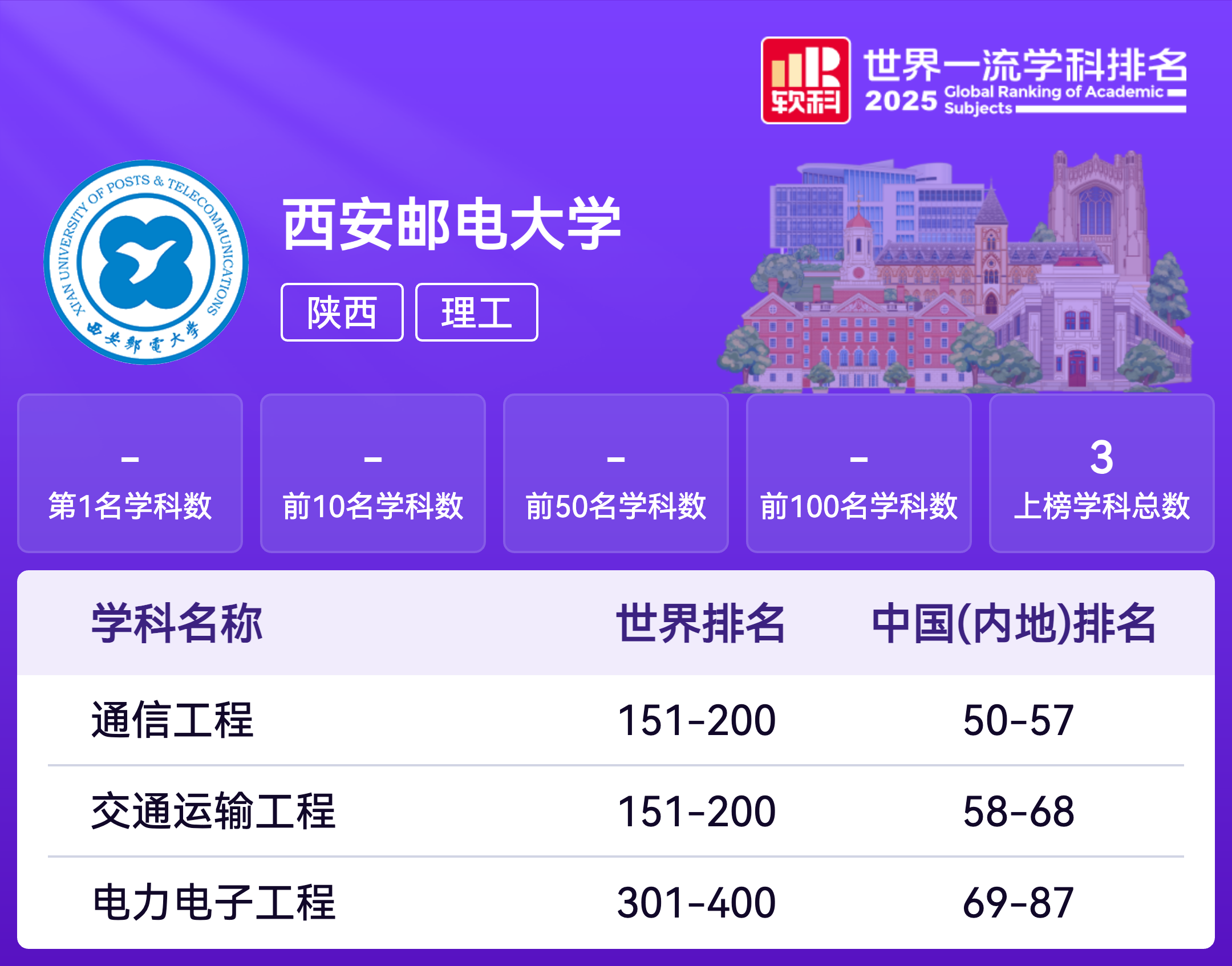 西安邮电大学是一所以工为主,以信息科学技术为主要特色,工管理经文法艺多学科协调发展的普通高校。是陕西省与工业和信息化部、国家邮政局共建高校、国家在西北地区布局的唯一邮电类普通高校、陕西省高水平建设高校、陕西省“一流大学、一流学科”建设高校、教育部“卓越工程师教育培养计划”实施高校、教育部“全国创新创业经验典型高校”。现有博士、硕士一级学科授权点13个,1个学科进入ESI学科排名全球前1%。
