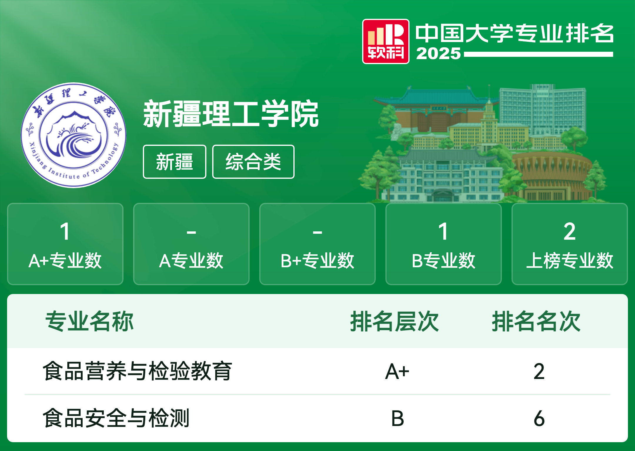 | 专业代码 | 专业名称 | 评级 | 专业排名 |