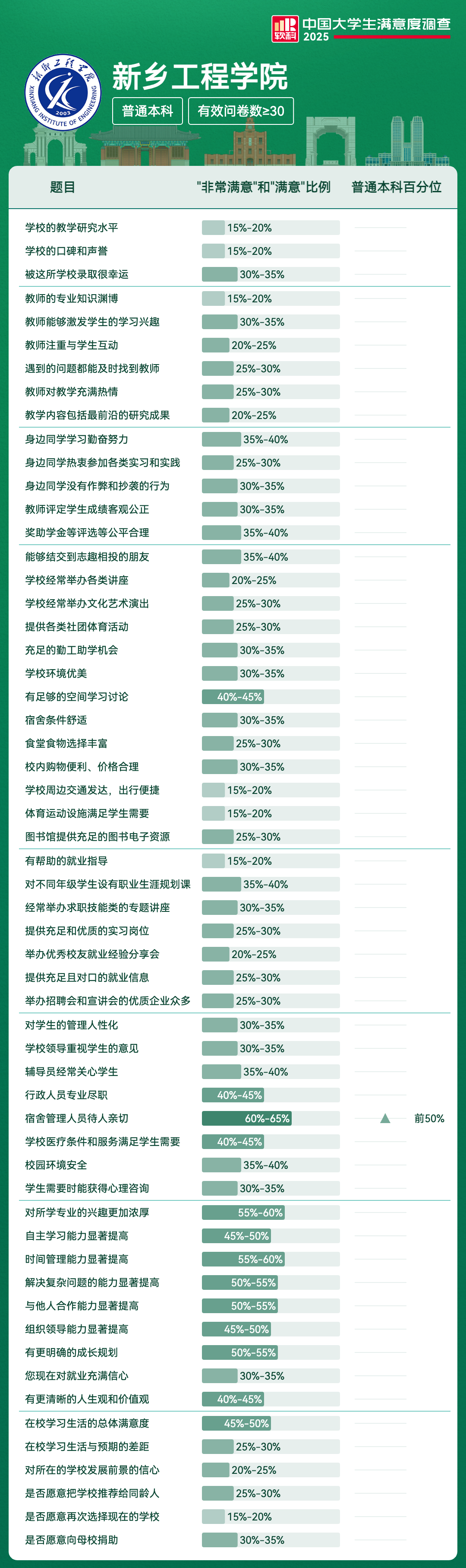 | 宿舍管理人员待人亲切 | 60%-65% | 前50% |