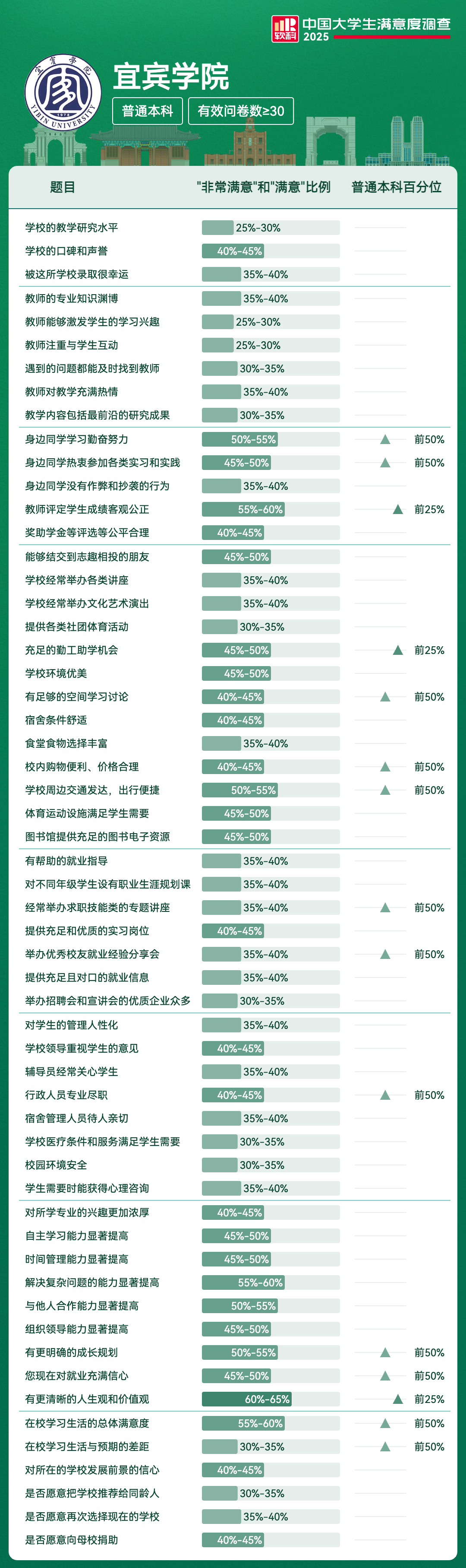 | 充足的勤工助学机会 | 45%-50% | 前25% |