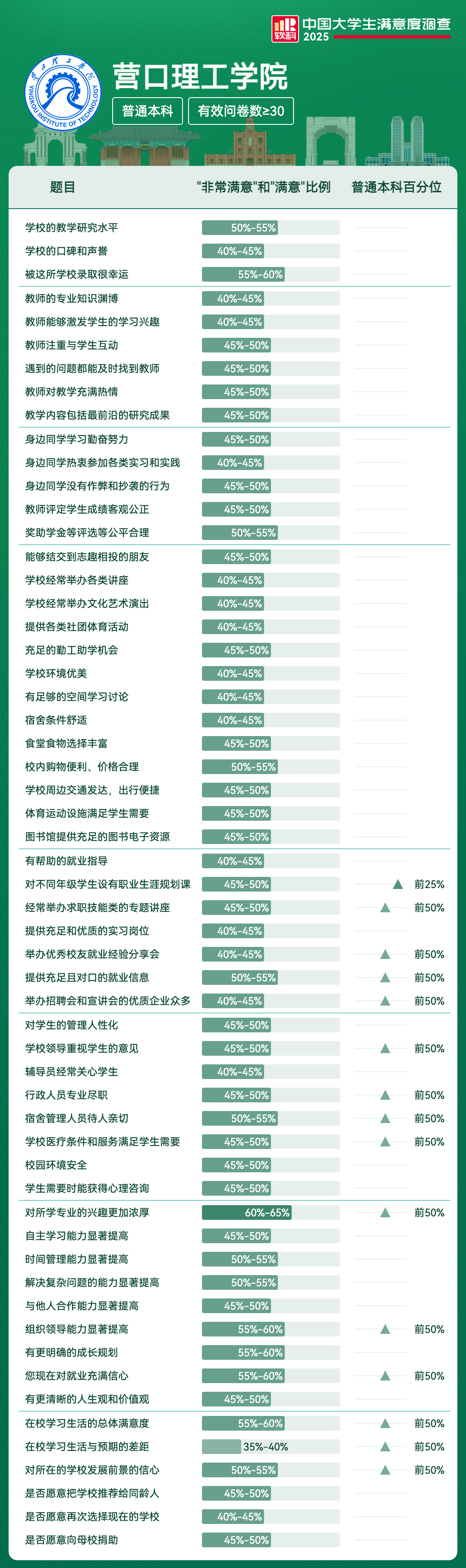 | 提供充足且对口的就业信息 | 50%-55% | 前50% |