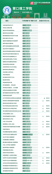 | 满意度前5项 | 满意及以上比例 | 全国高校排名区间 |