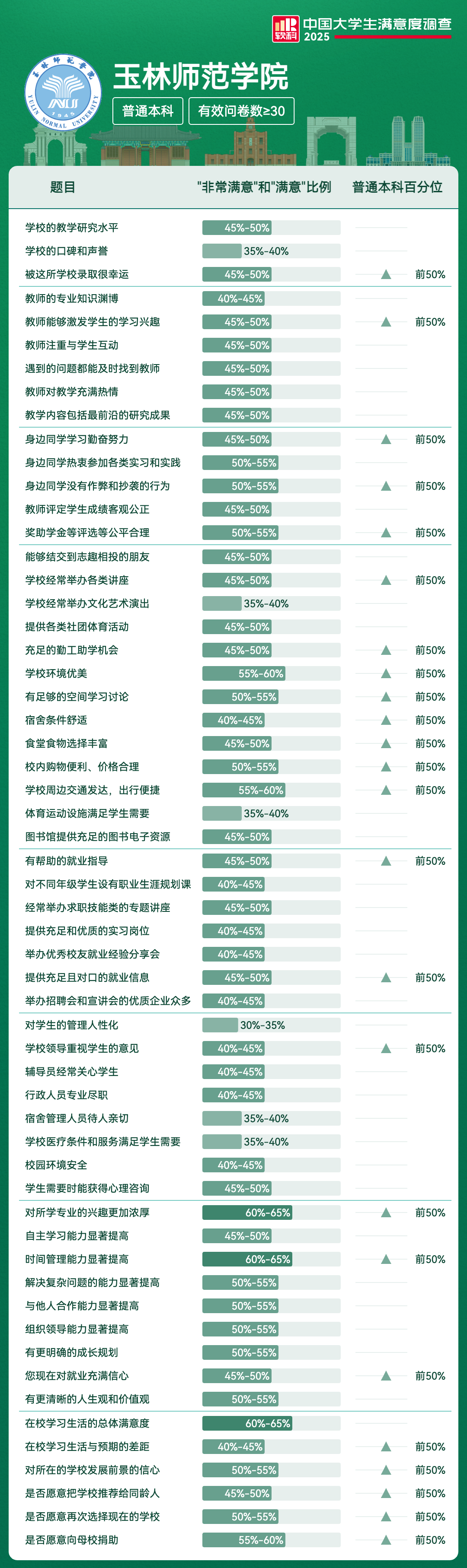 被这所学校录取很幸运 | 45%-50% | 前50% |