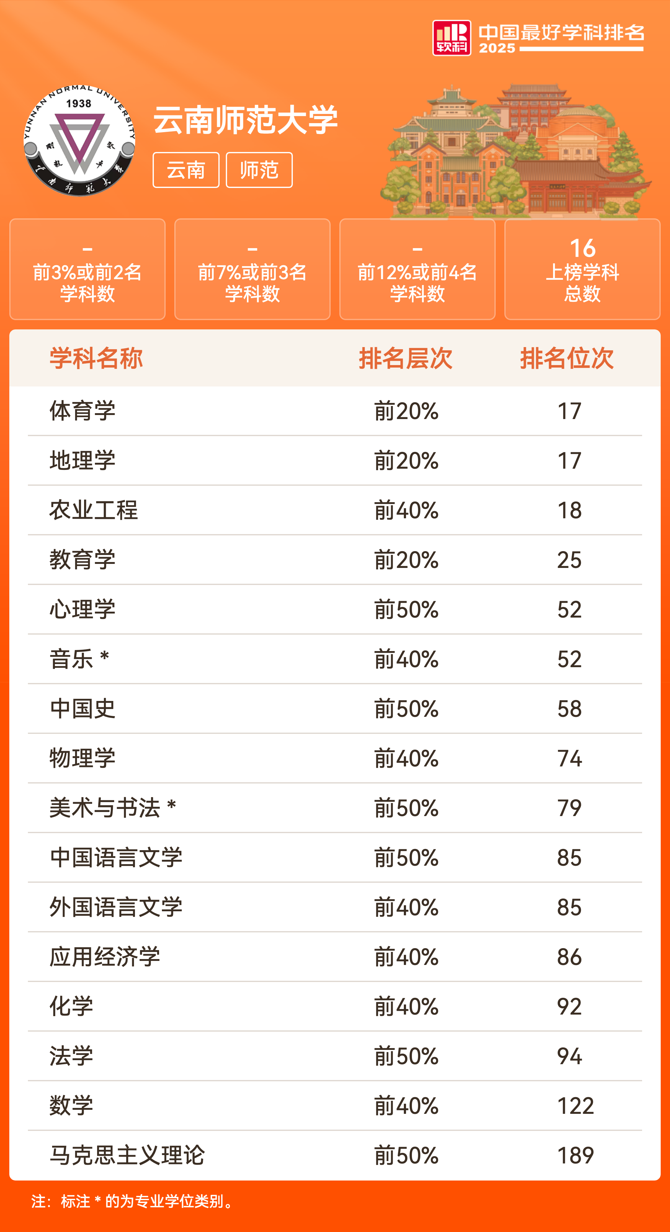学科代码 | 学科名称 | 排名层次 | 学科排名 |