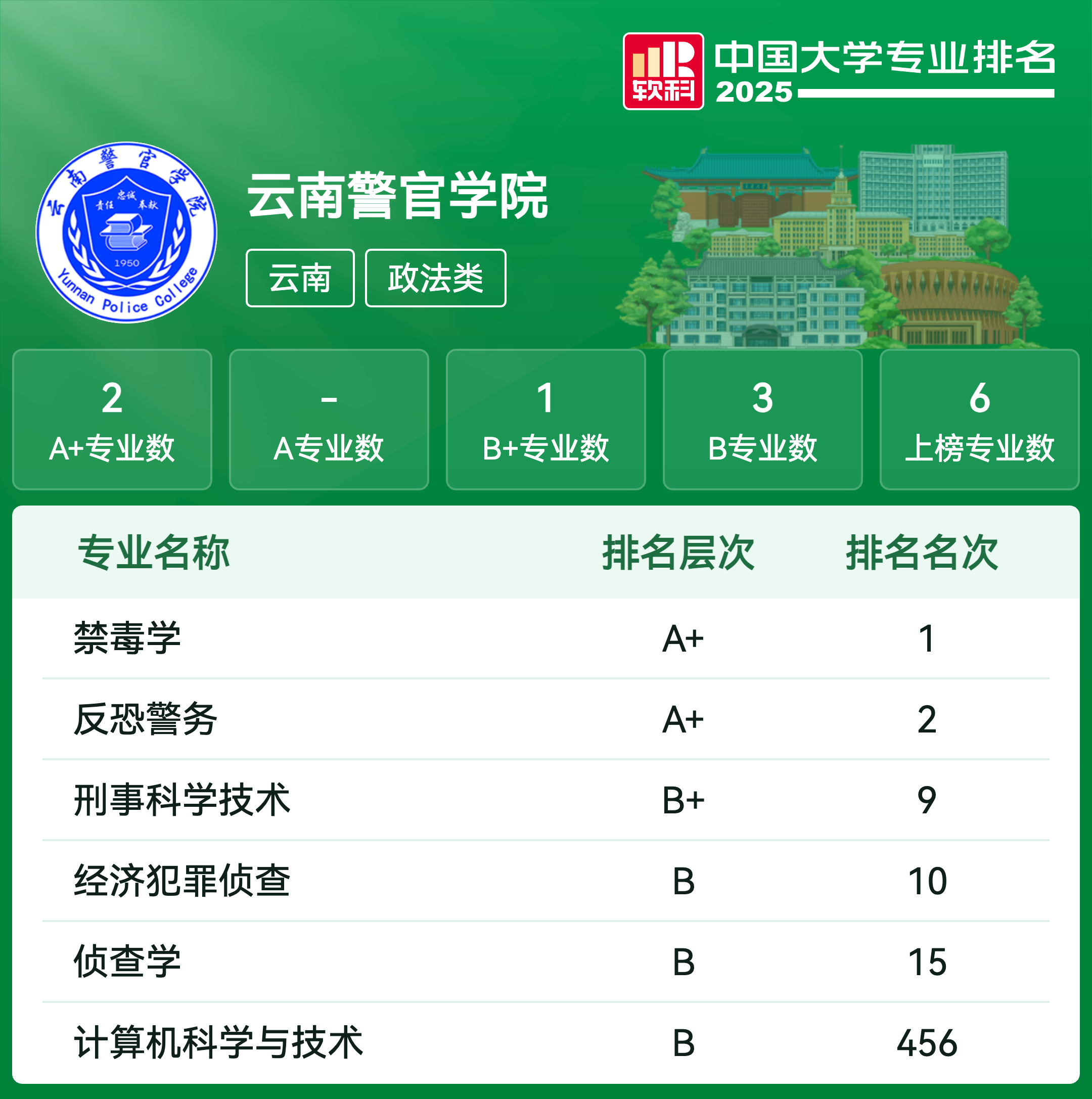 | 专业名称 | 评级 | 专业排名 |