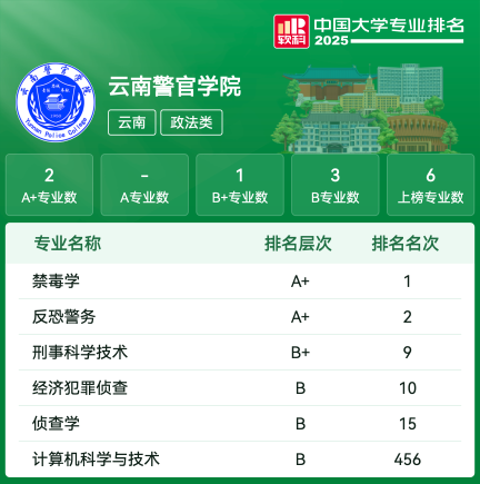 | 专业代码 | 专业名称 | 评级 | 专业排名 |