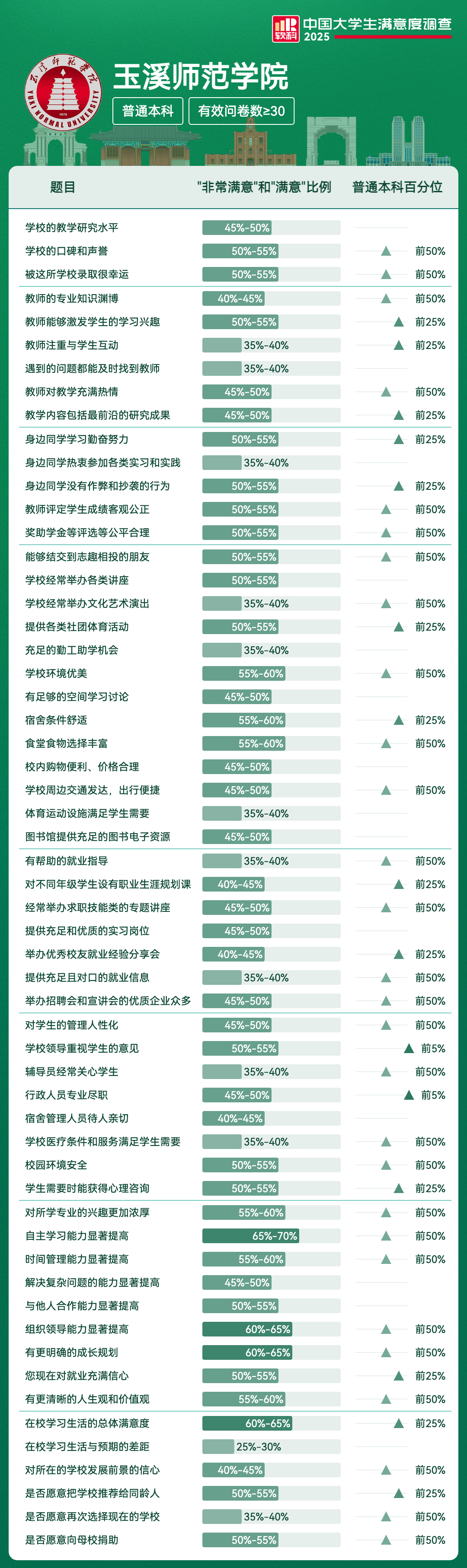 | 学校领导重视学生的意见 | 50%-55% | 前5% |