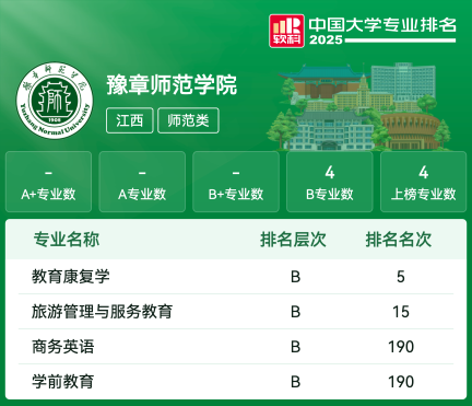 | 专业代码 | 专业名称 | 评级 | 专业排名 |