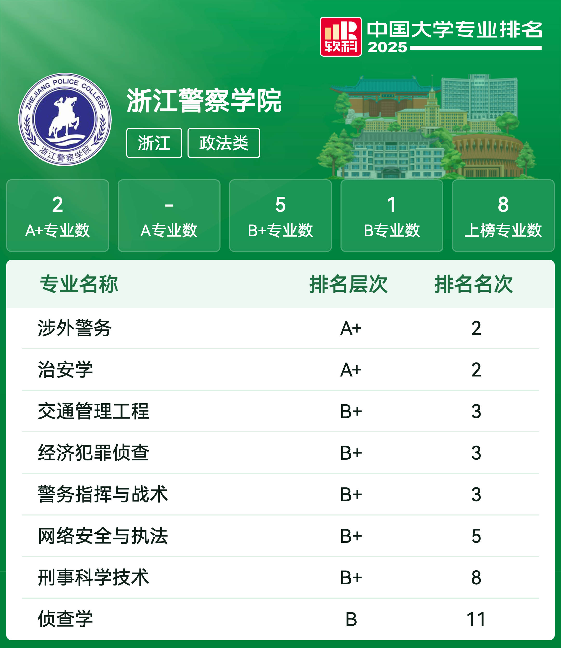 | 专业代码 | 专业名称 | 评级 | 专业排名 |