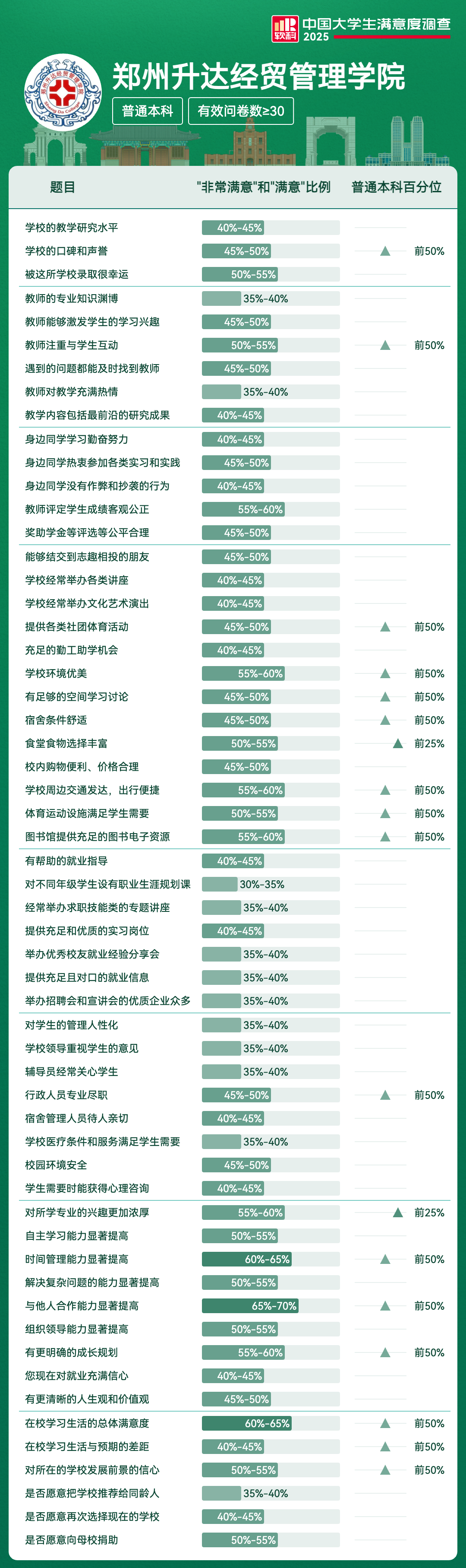 | 对所学专业的兴趣更加浓厚 | 55%-60% | 前25% |