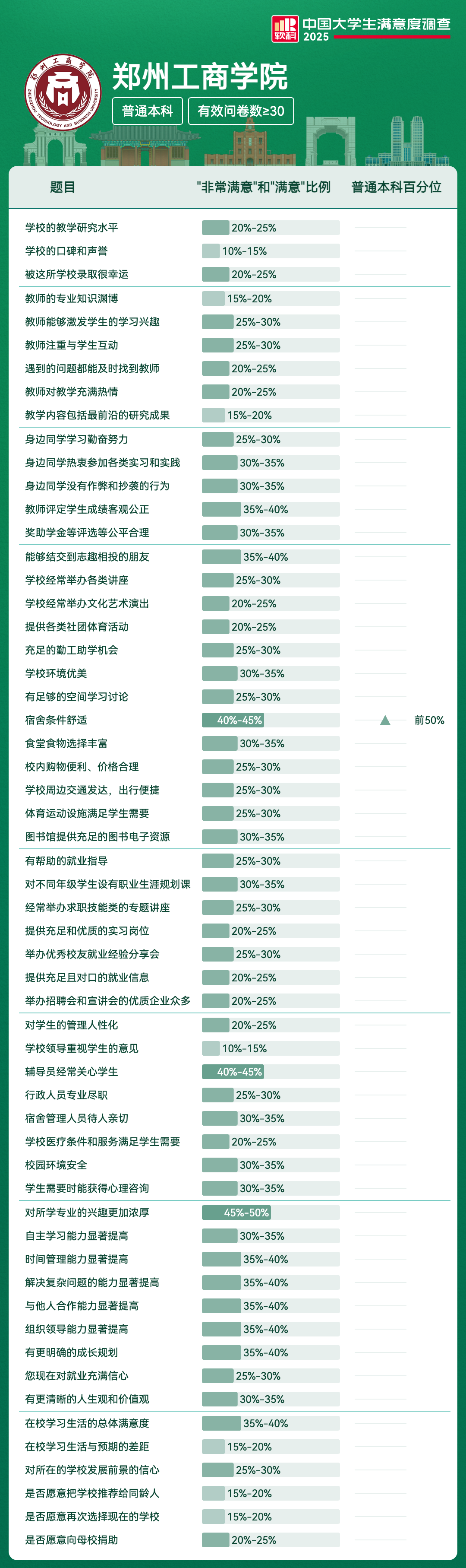 | 宿舍条件舒适 | 40%-45% | 前50% |