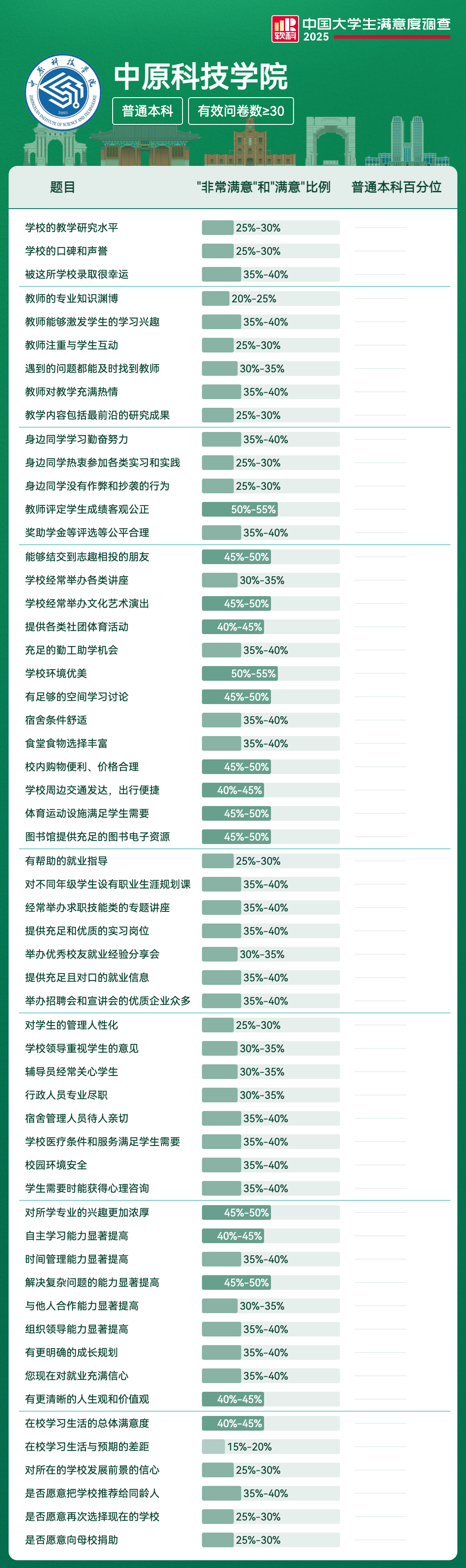 | 学校的教学研究水平 | 25%-30% | |